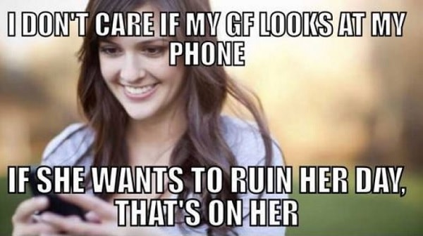 13. I Don't Care If My GF Looks at My Phone. If She Wants to Ruin Her Solar day, That'southward on Her.