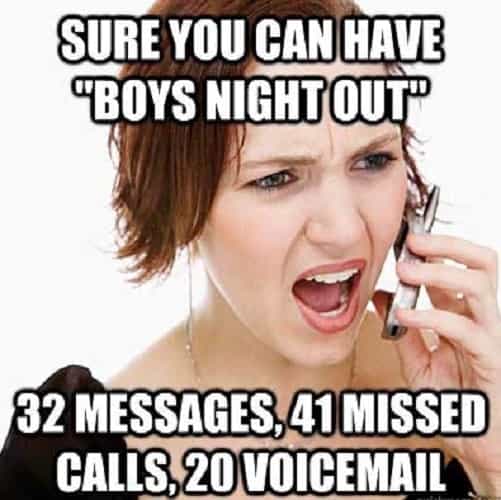seven. Sure You Can Have "Boys Night Out". 32 Messages, 41 Missed Calls, 20 Voicemail.